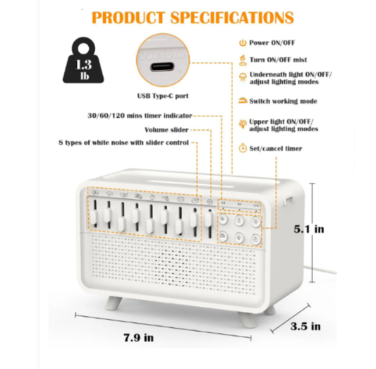 3-in-1 White Noise Bluetooth Speaker & Humidifier